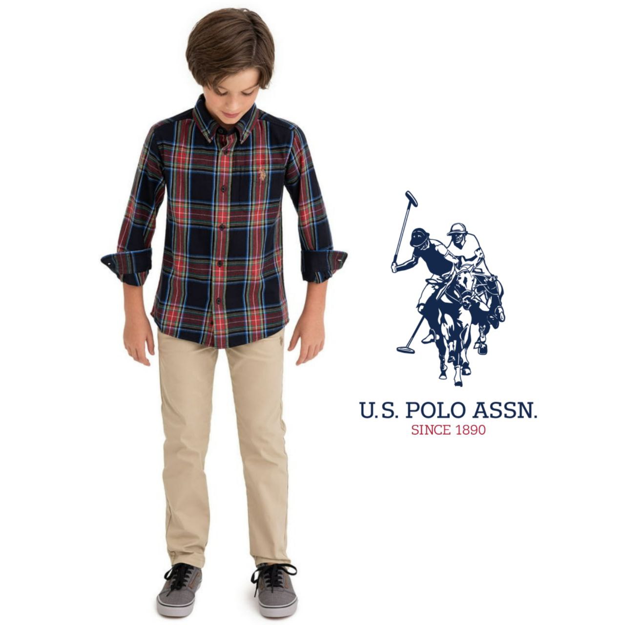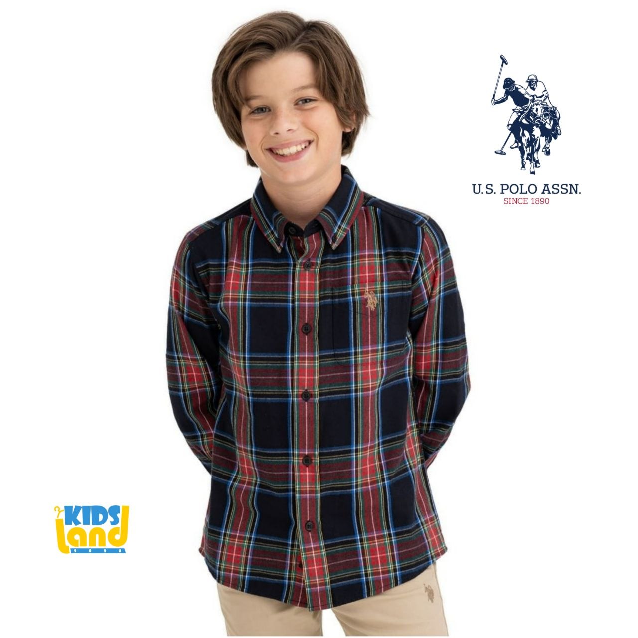 پیراهن پسرانه چهارخانه اصل برند U.S. Polo